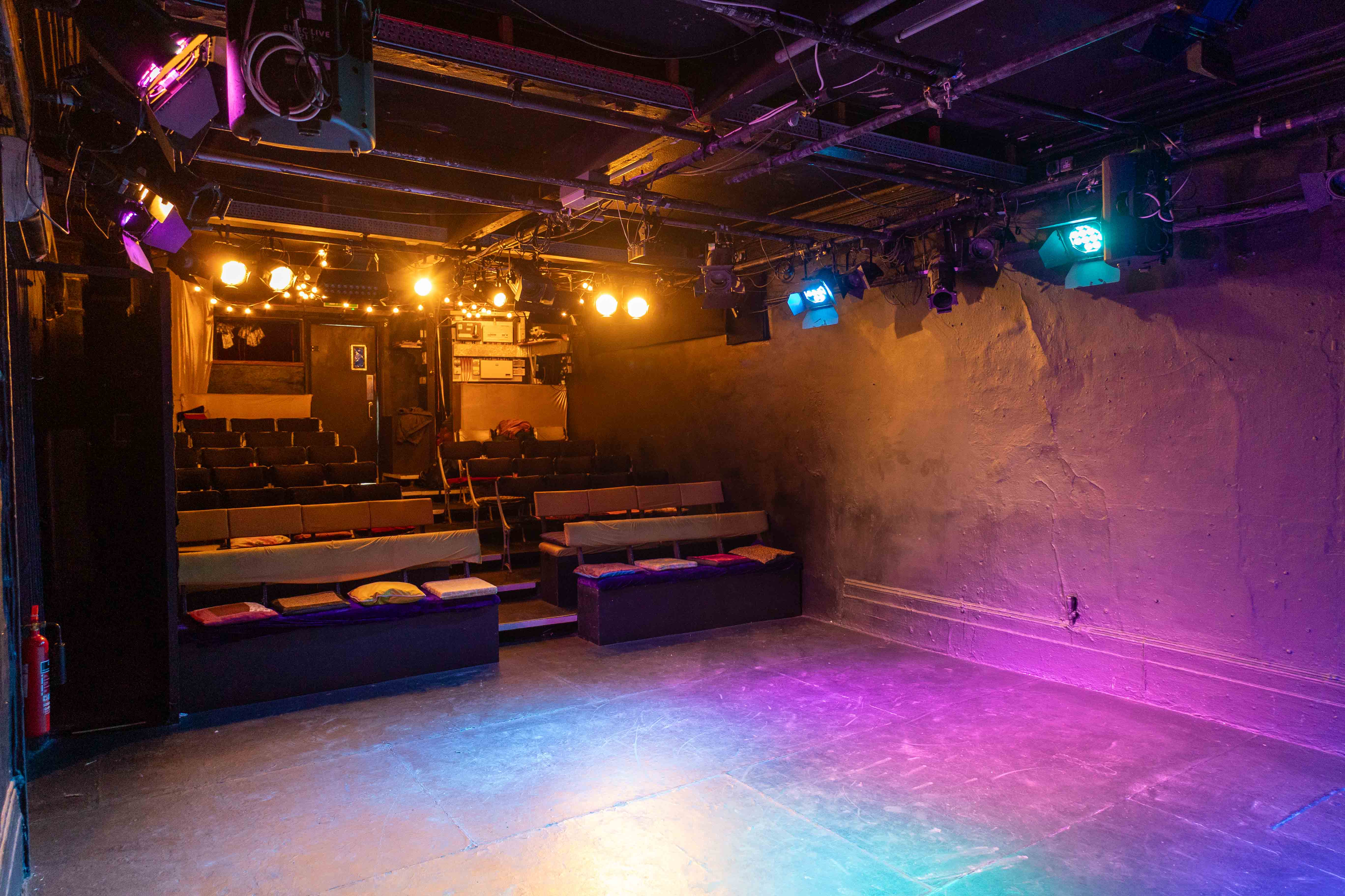 Full lighting rig with PA and projector.